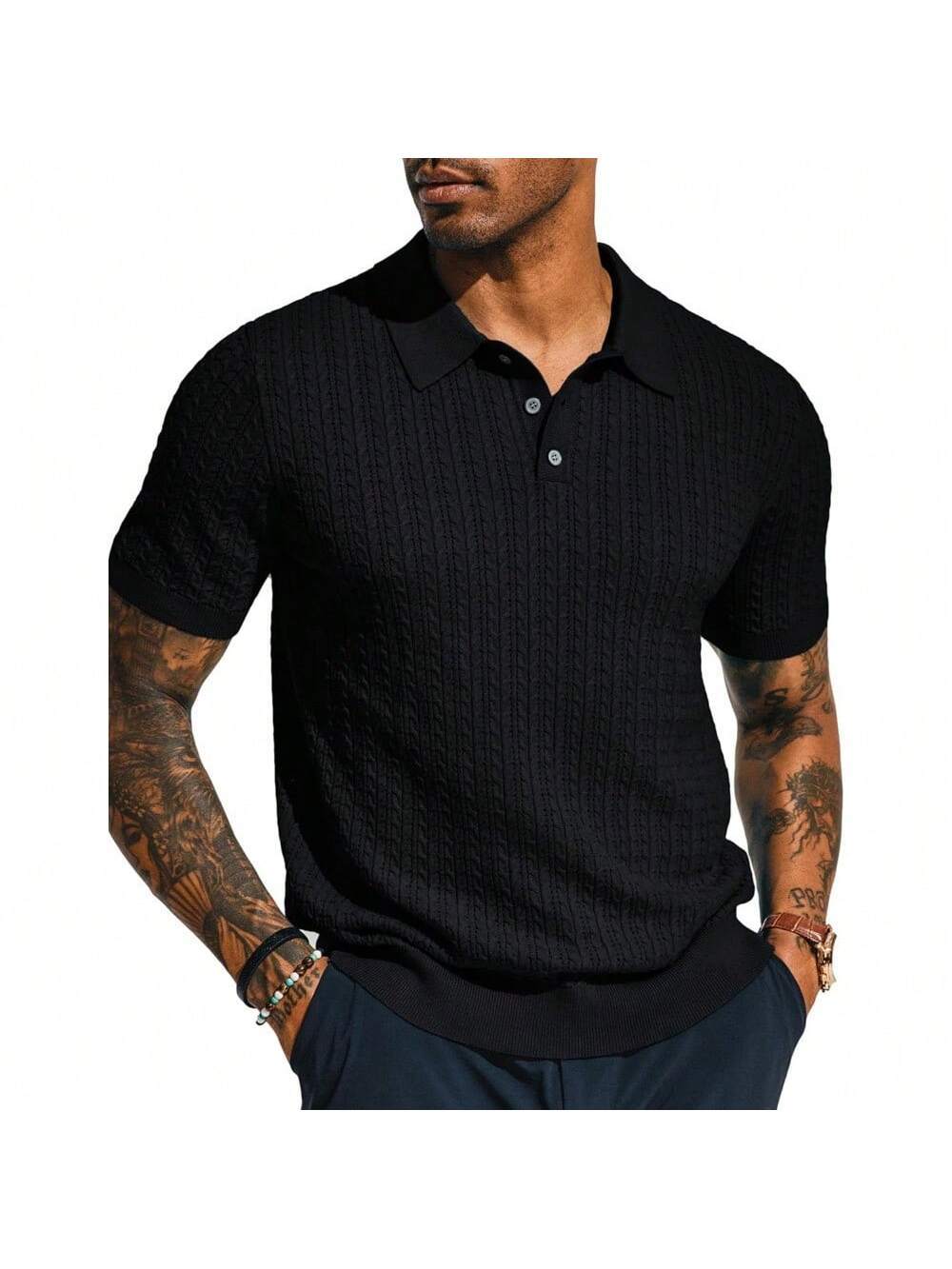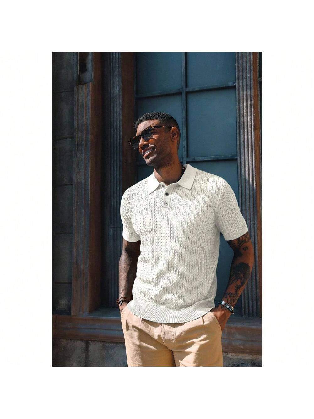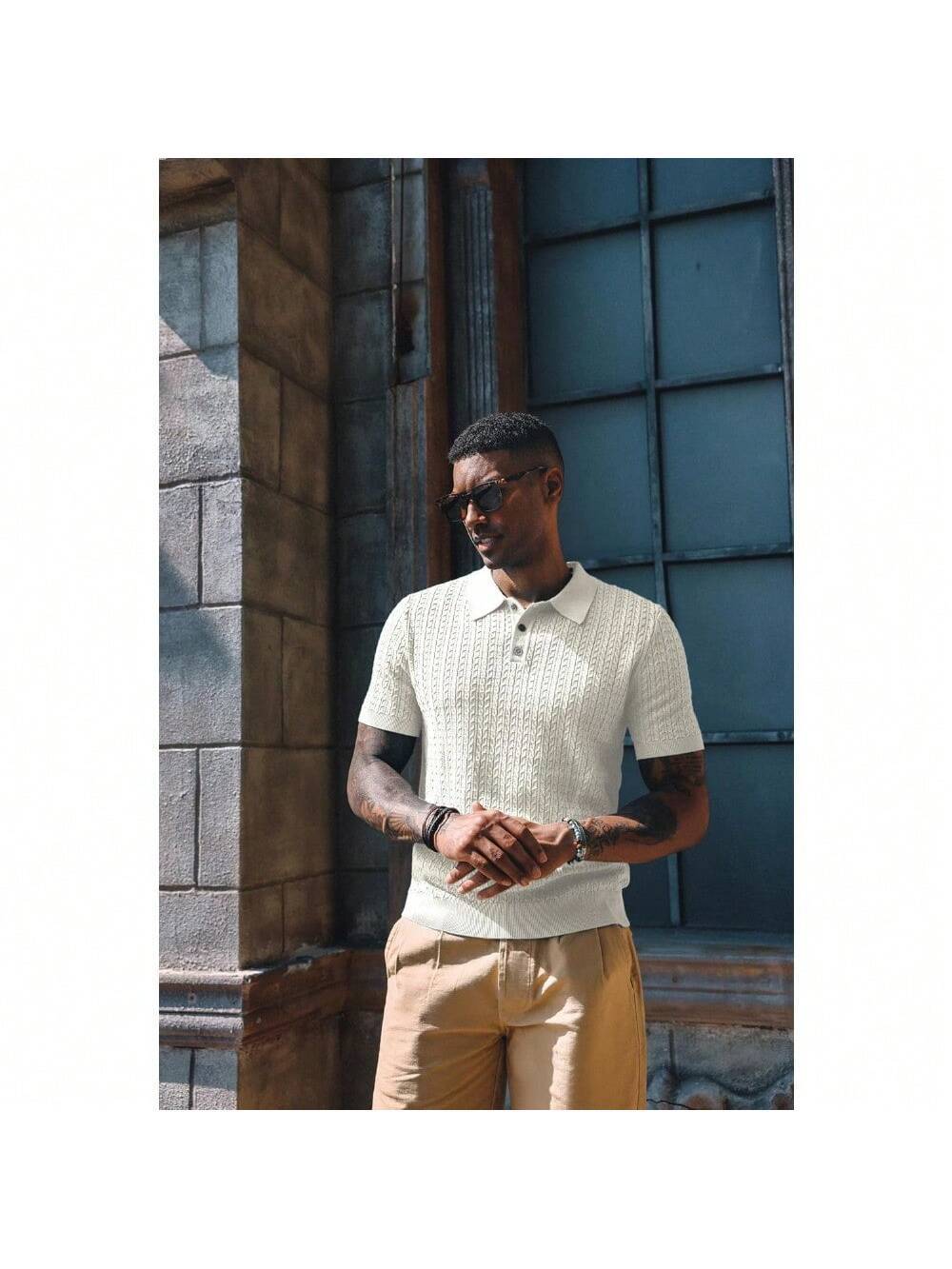 Mens knit polo shirt short sleeve hollow out knit shirt texture knitted polo